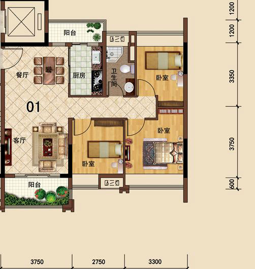 佛山美的花湾城3座01、02单元4座01、02、04单元90.00㎡