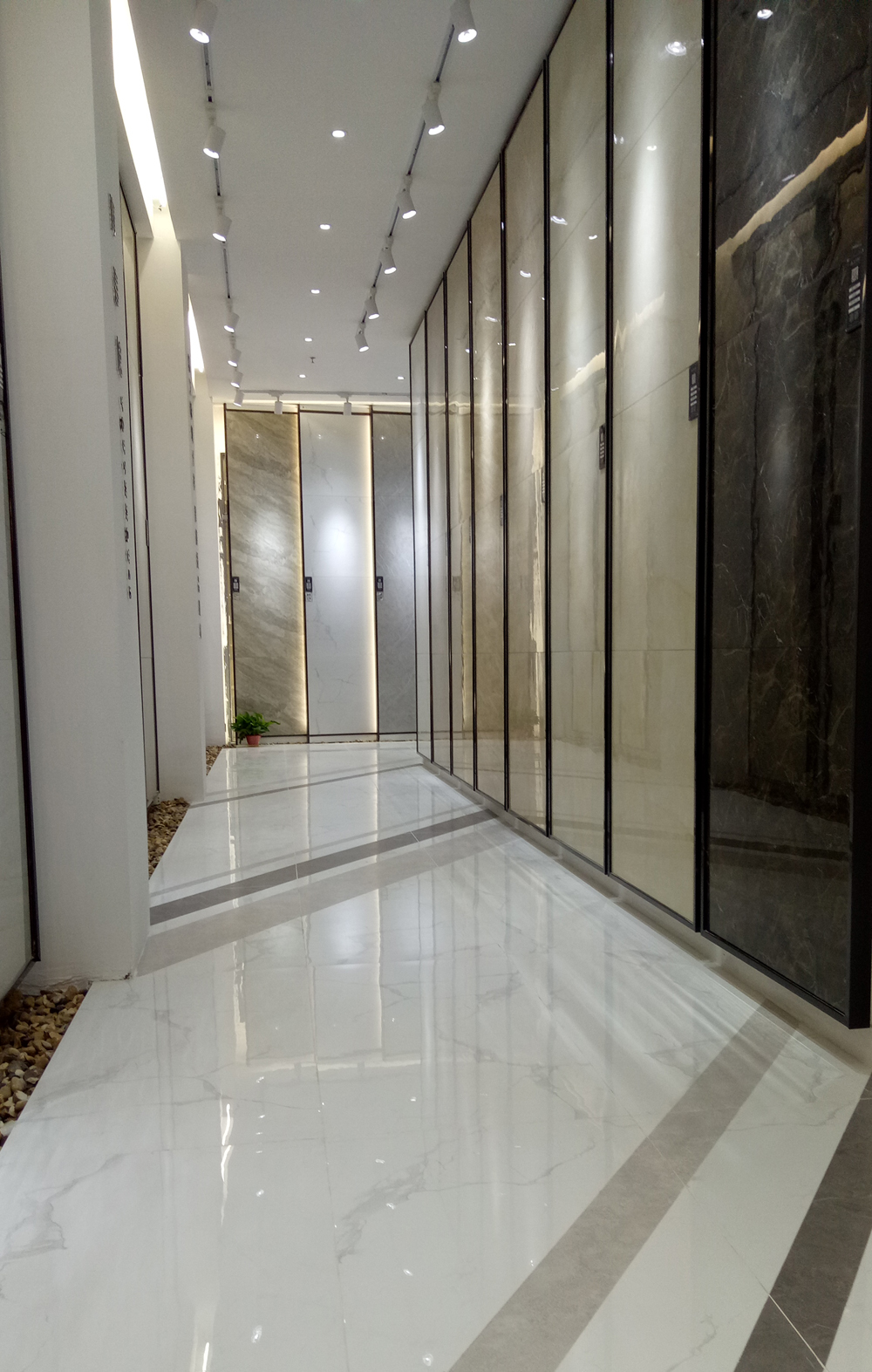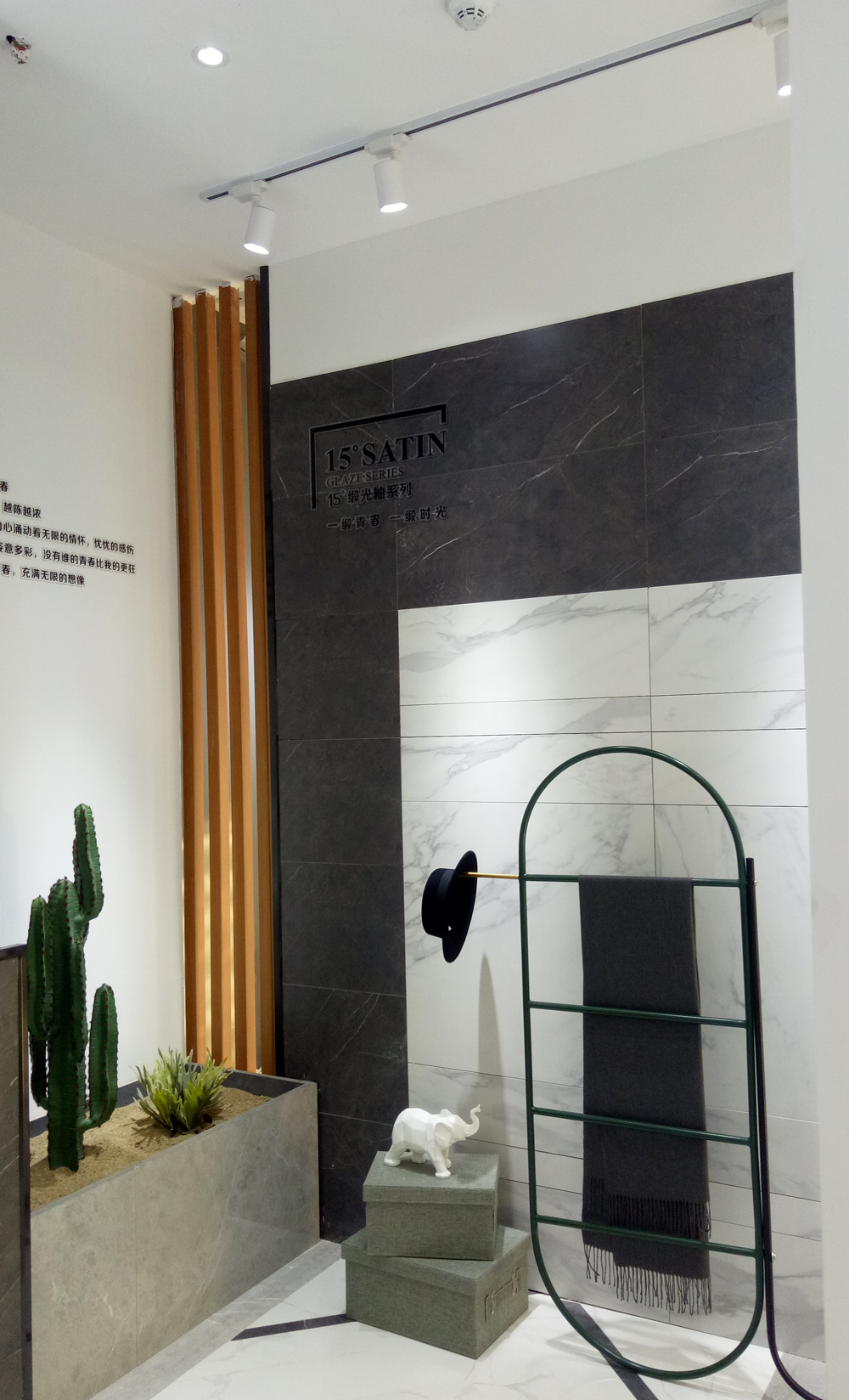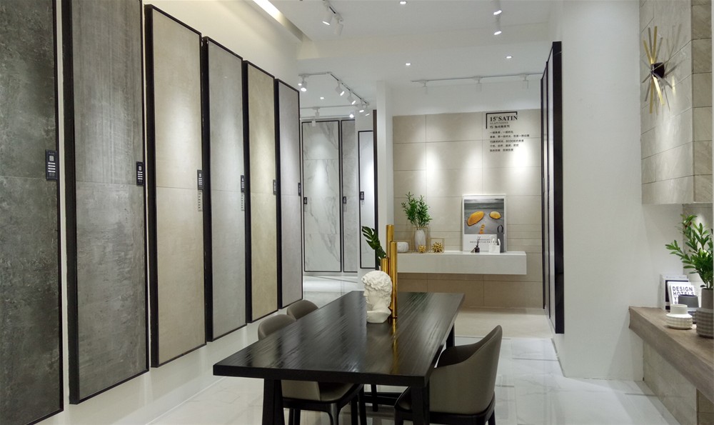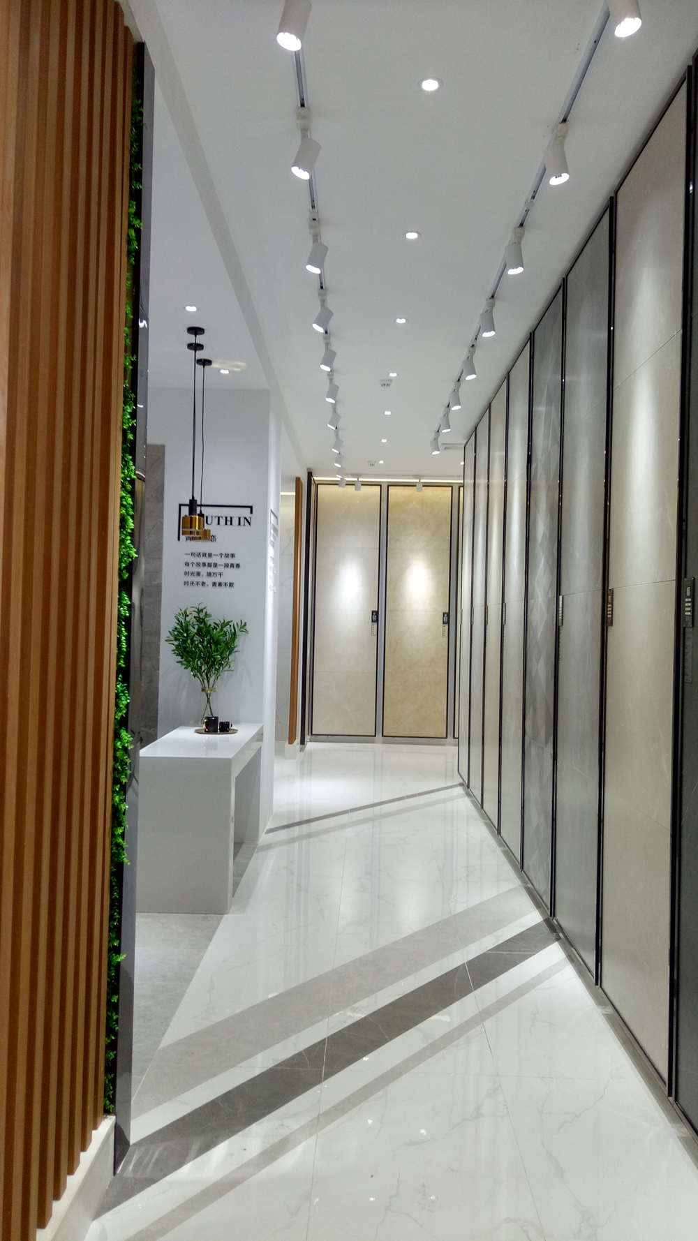 4/这是大板的选材区,选用打竖的陈列方式,射灯照射下的产品,干净、整洁、大气、直观。