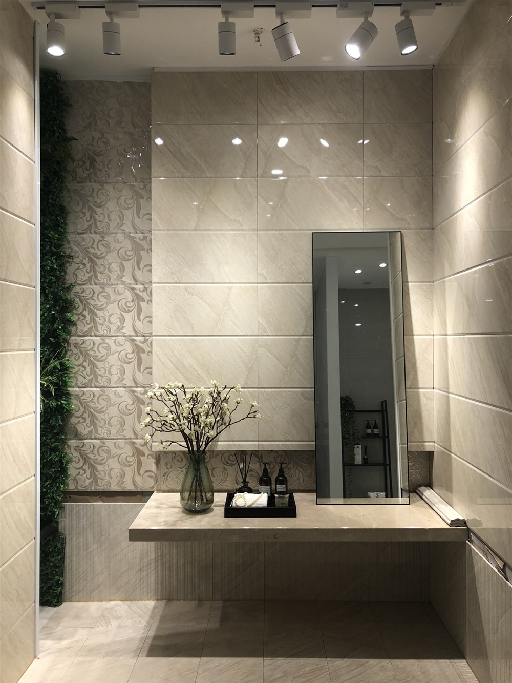墙面用砖可作电视背景墙、客厅地砖、厨卫墙砖使用,大气随意的纹理营造个性独到的空间。