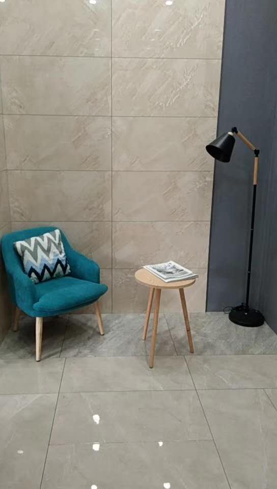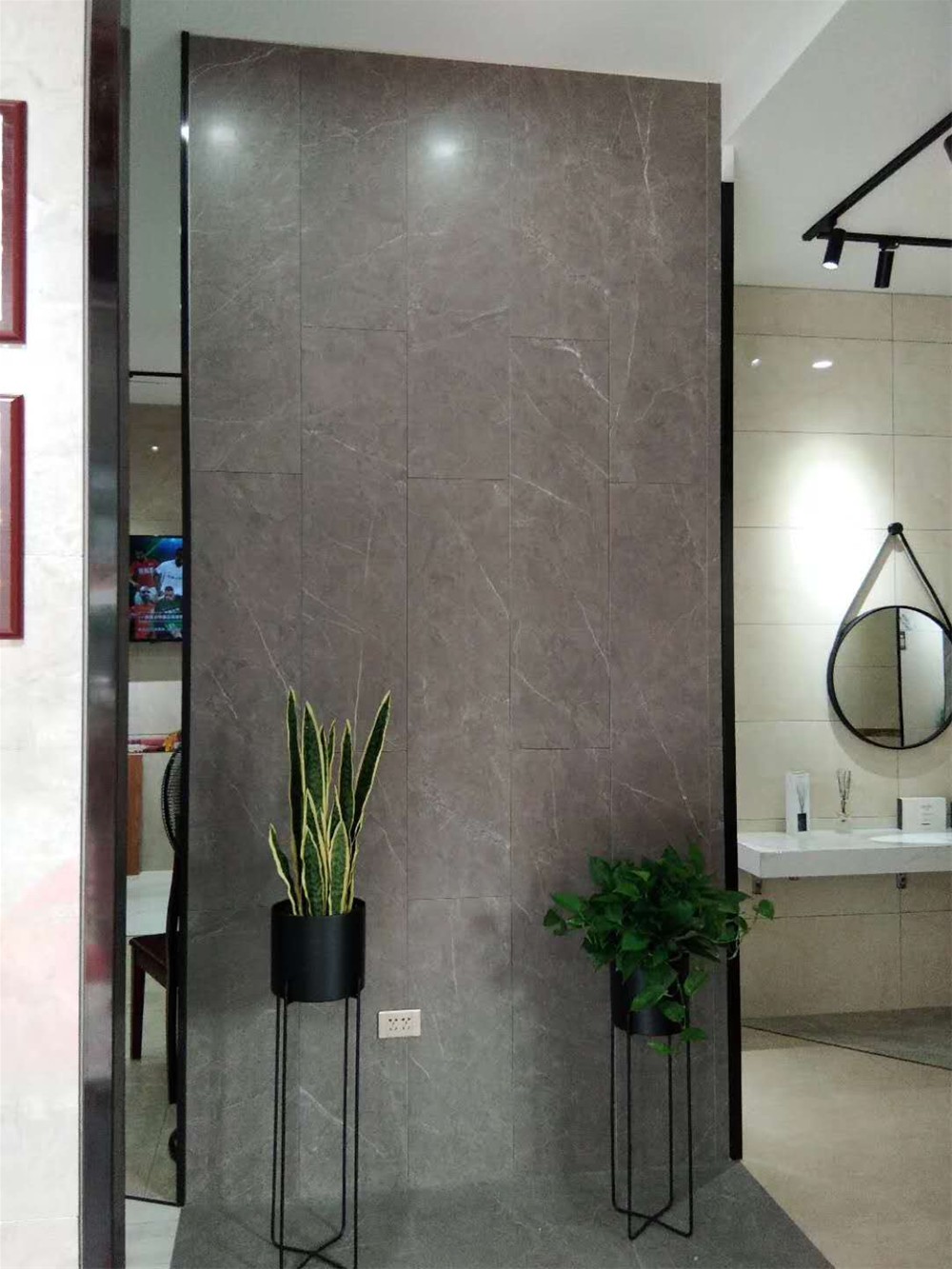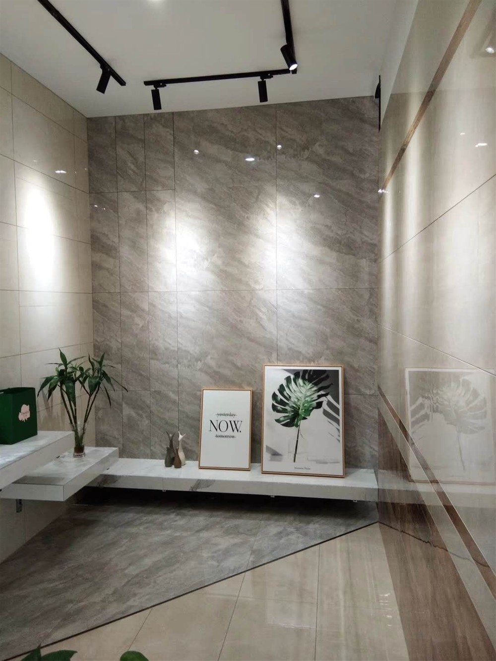这是由香蕉APP直播陶艾釉石格兰石铺设的模拟间,与灰色的墙漆搭配,营造墙面的立体感。这墙面也可作电视背景墙、客厅地砖使用。