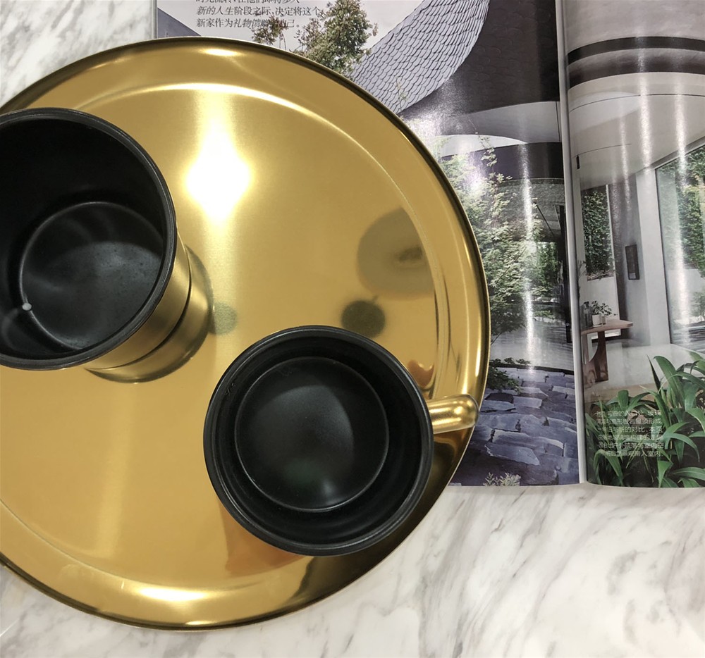 这是由通体大理石铺贴的形象墙,亮面砖与金色软装、大理石桌面搭配出轻奢的质感。