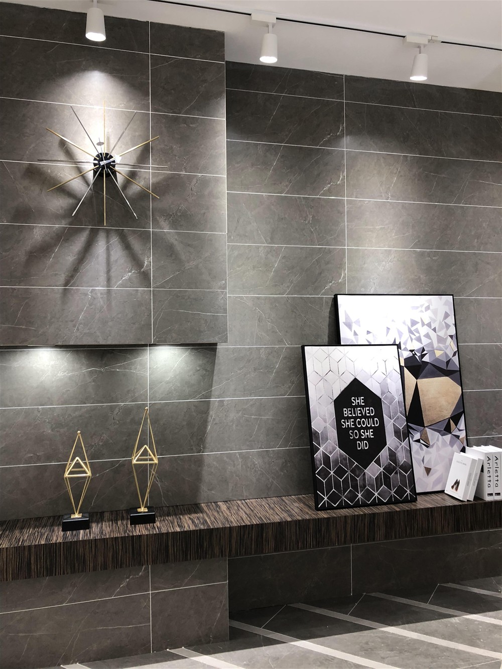 两款砖都可作电视背景墙、客厅地砖、沙发背景墙铺贴使用。