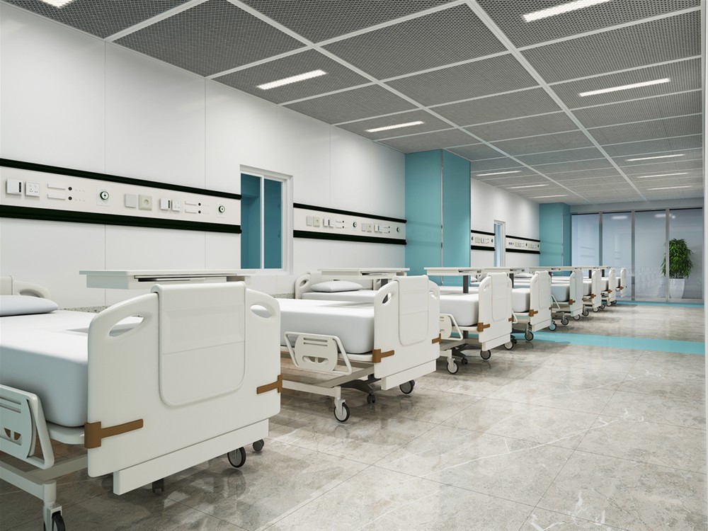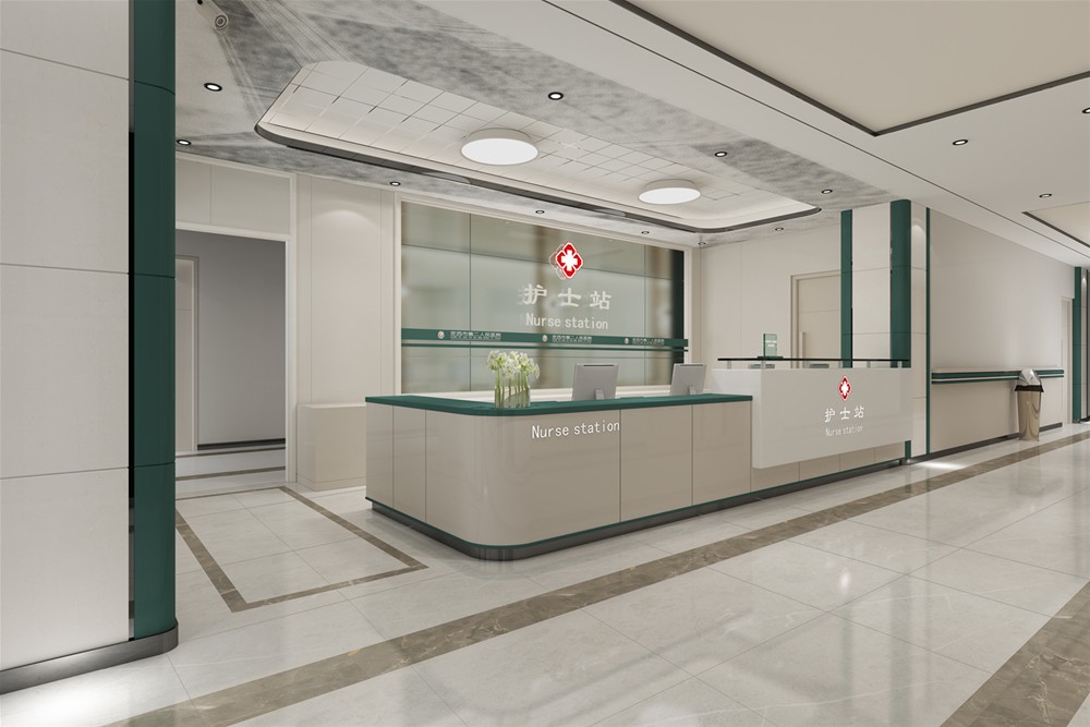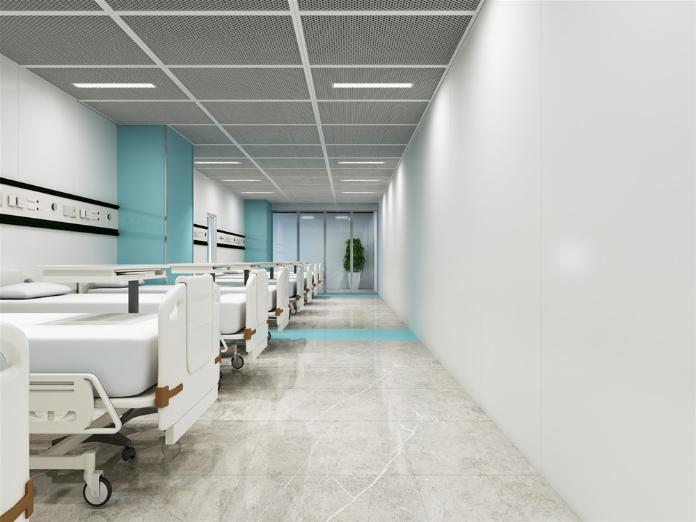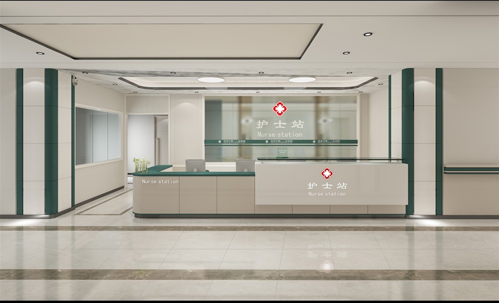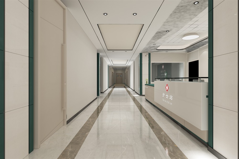 绿色代表生命力,白色代表洁净,病房选用绿色衬托,白色为主色调,地砖选用沉稳大气的灰色,营造一个卫生、专业、有生命力的空间氛围。