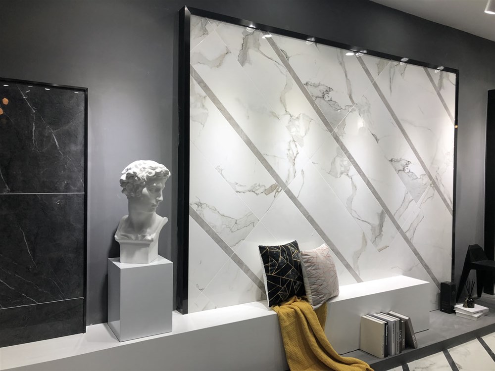 这款产品可作电视背景墙、客厅地砖、商场地砖、酒店大堂用砖都非常显大气。