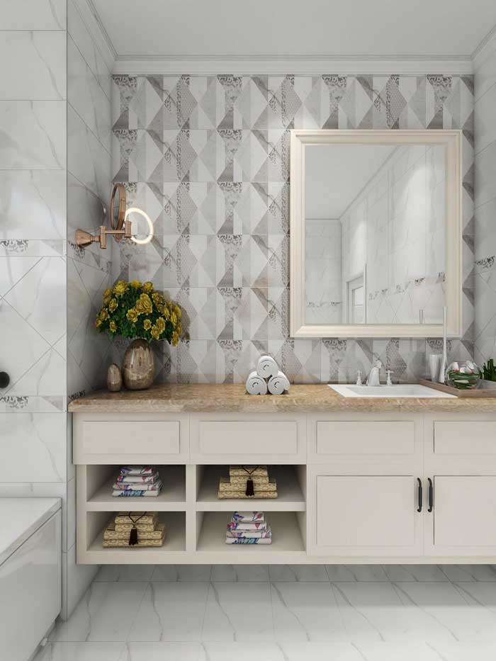 如果你对时下流行的北欧风的浴室表现出色,独具一格的花砖装饰,装点在浴室中最合适不过。