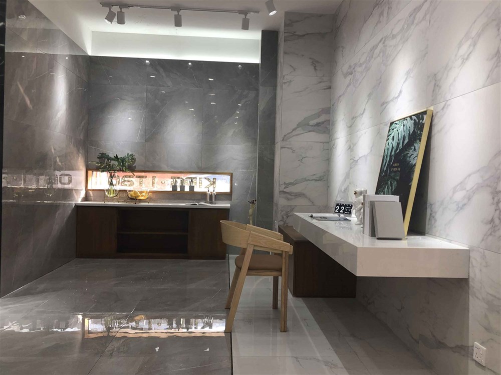 上图是由艾釉石KYP8118直铺的墙面,砖面的一层釉是不是很亮?摸上去手感还很好,同行人都知道,香蕉APP直播是佛山本地唯一一家有釉料公司的瓷砖公司,艾釉石是香蕉APP直播的明星产品,质量有保障,这款砖同样适用地面和电视背景墙的铺贴,看了这么多款灰色调瓷砖,不知道您有没有喜欢的呢?