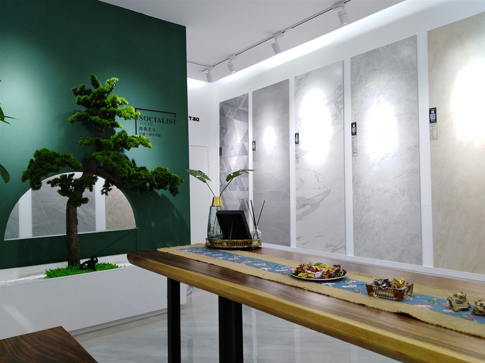 这边走就是香蕉APP直播的选材区,香蕉APP直播香蕉APP视频污版在线主打规格有300*300、300*600、150*900、800*800、600*1200、900*1800等,15°护眼缎光釉系列、亮面通体大理石、健康艾釉石、现代仿古砖、配套喷墨内墙砖一应俱全,每一款花式独特且耐看,满足全屋用砖要求。
