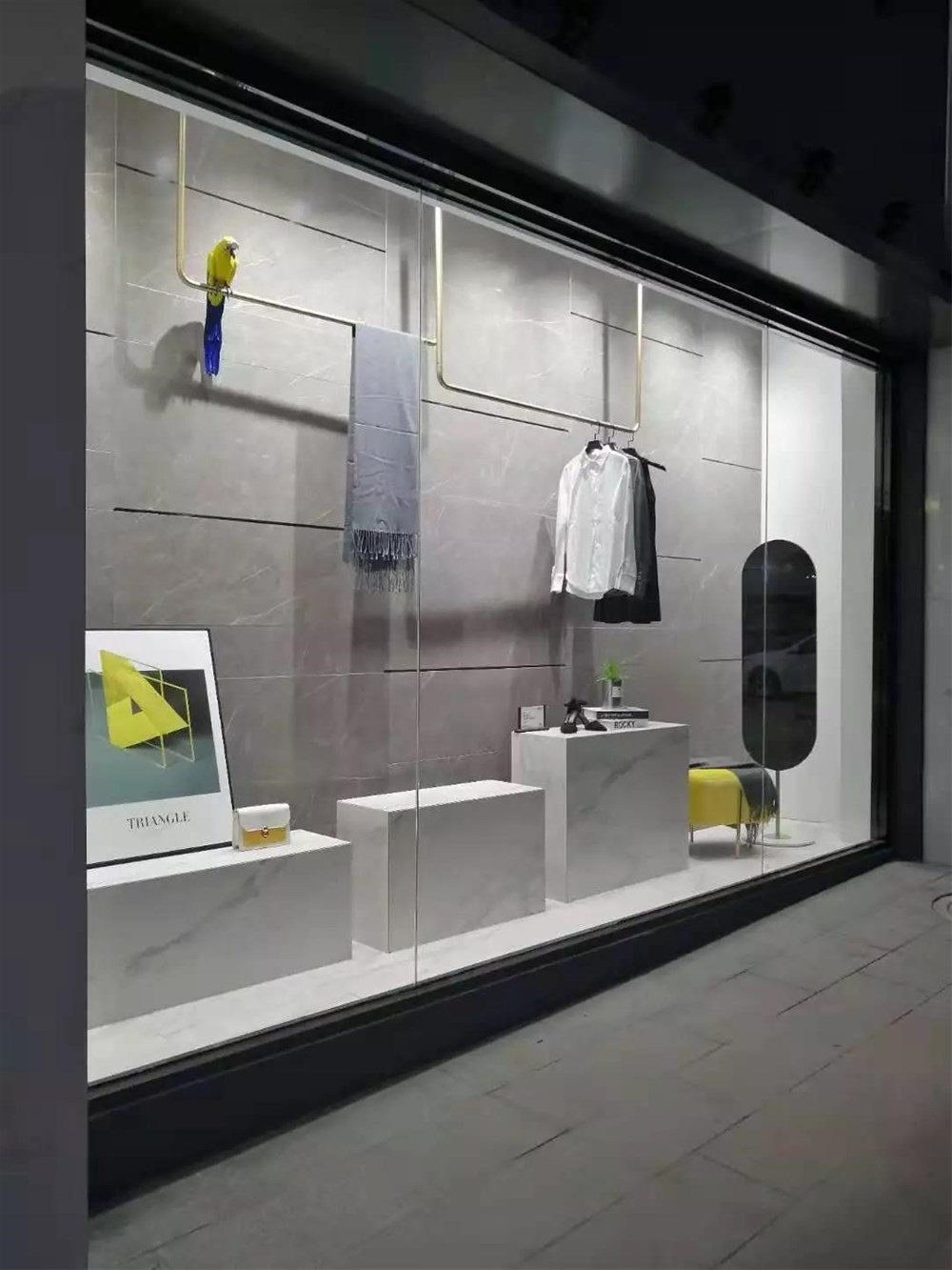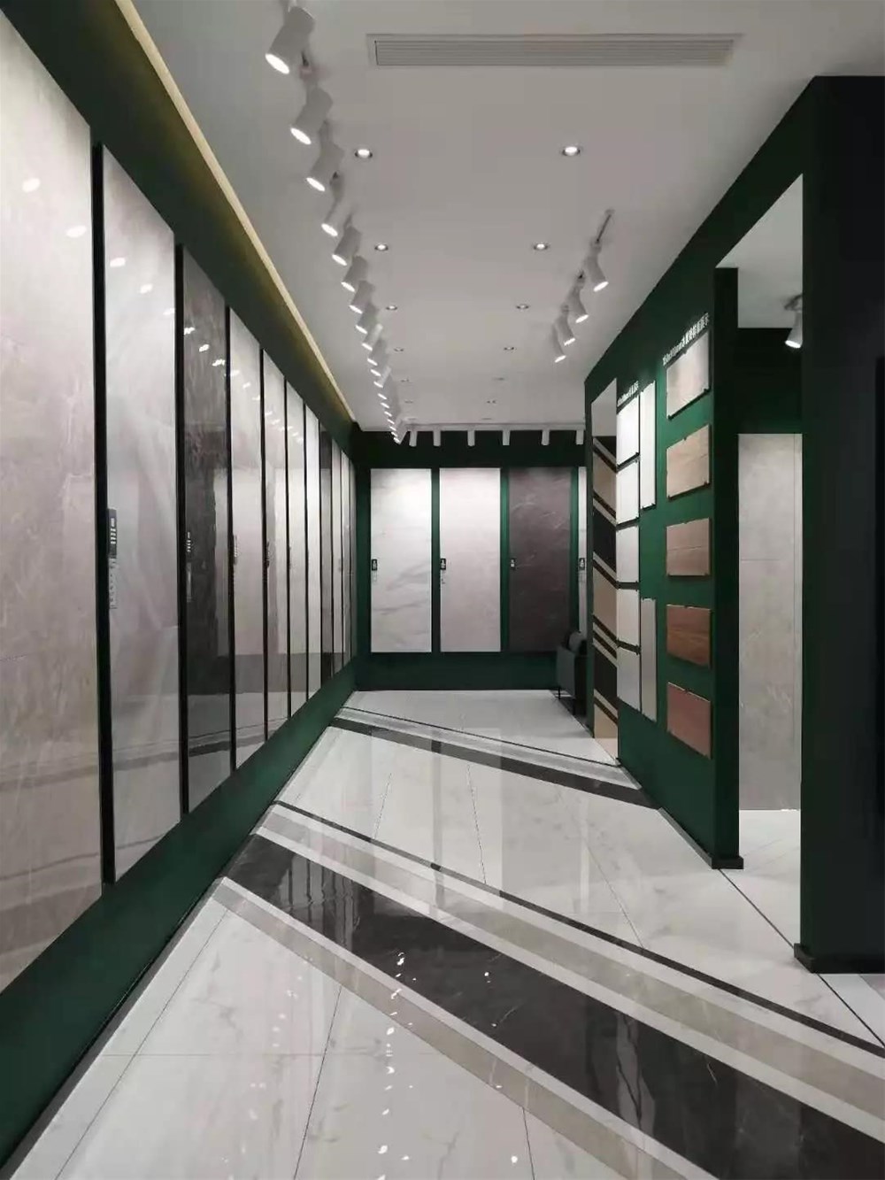 15°缎光釉的灰色调自带迷人的高贵氛围,结合白色的卡拉拉白,打造出高端商场的购物气氛,就连货架上的货物都显得那么的珍贵。