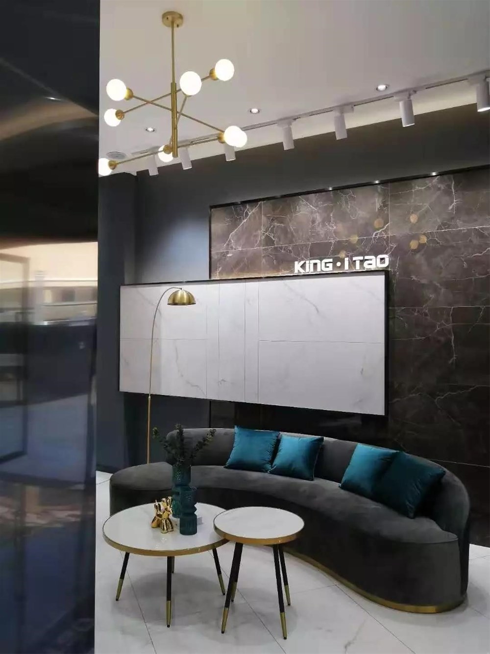 暖灰色通体大理石KA9M009打造前台背景墙非常有味道,不愧是多年的畅销榜长青树。