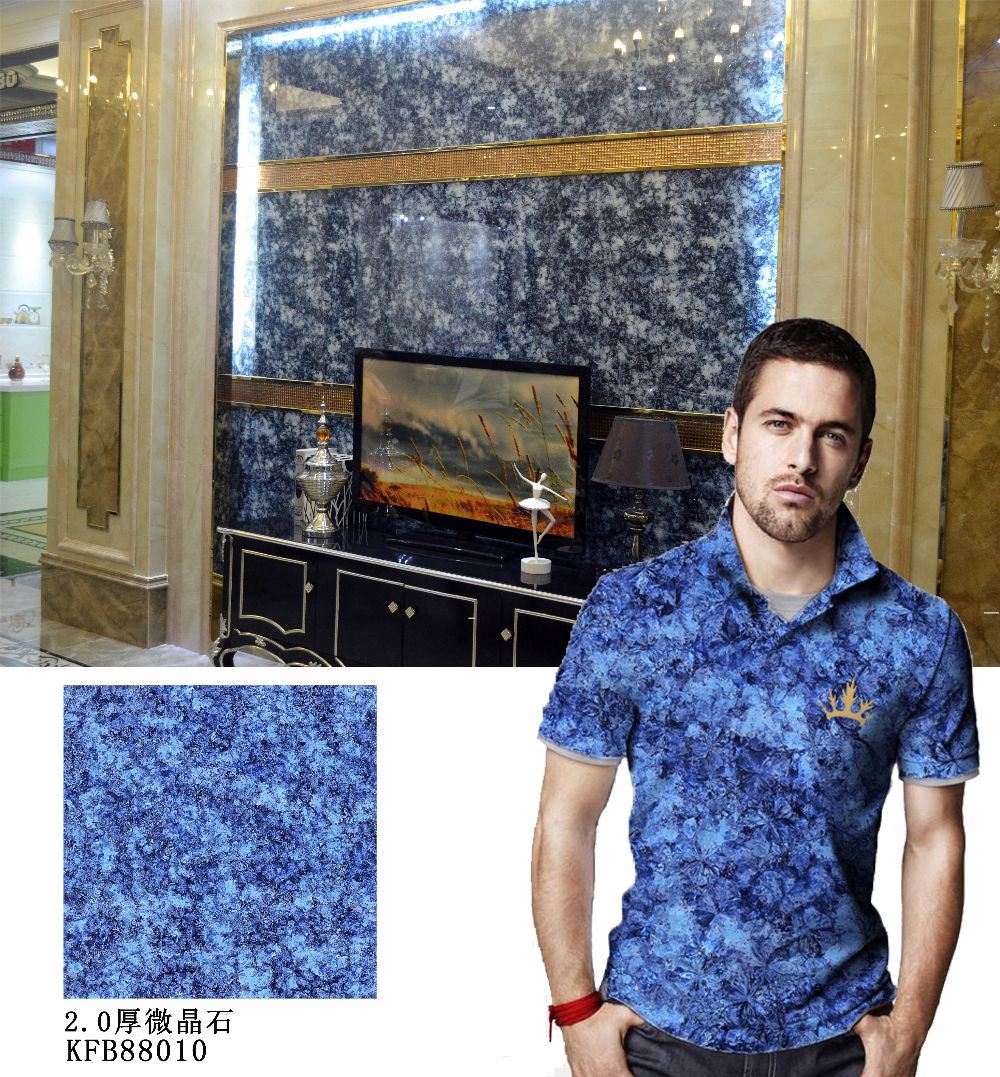 灵感来源于石材王国西班牙的绿松石,作为西班牙名石的代表,设计结合中国水墨的意境创作而成,靛青色的水墨色调均匀的分布沉淀下来,犹如一幅淡雅的艺术画作。再经过全抛工艺的镜面处理,感觉像油墨停留在水面的那般楚楚动人。装饰空间呈现出十分典雅庄重的空间。