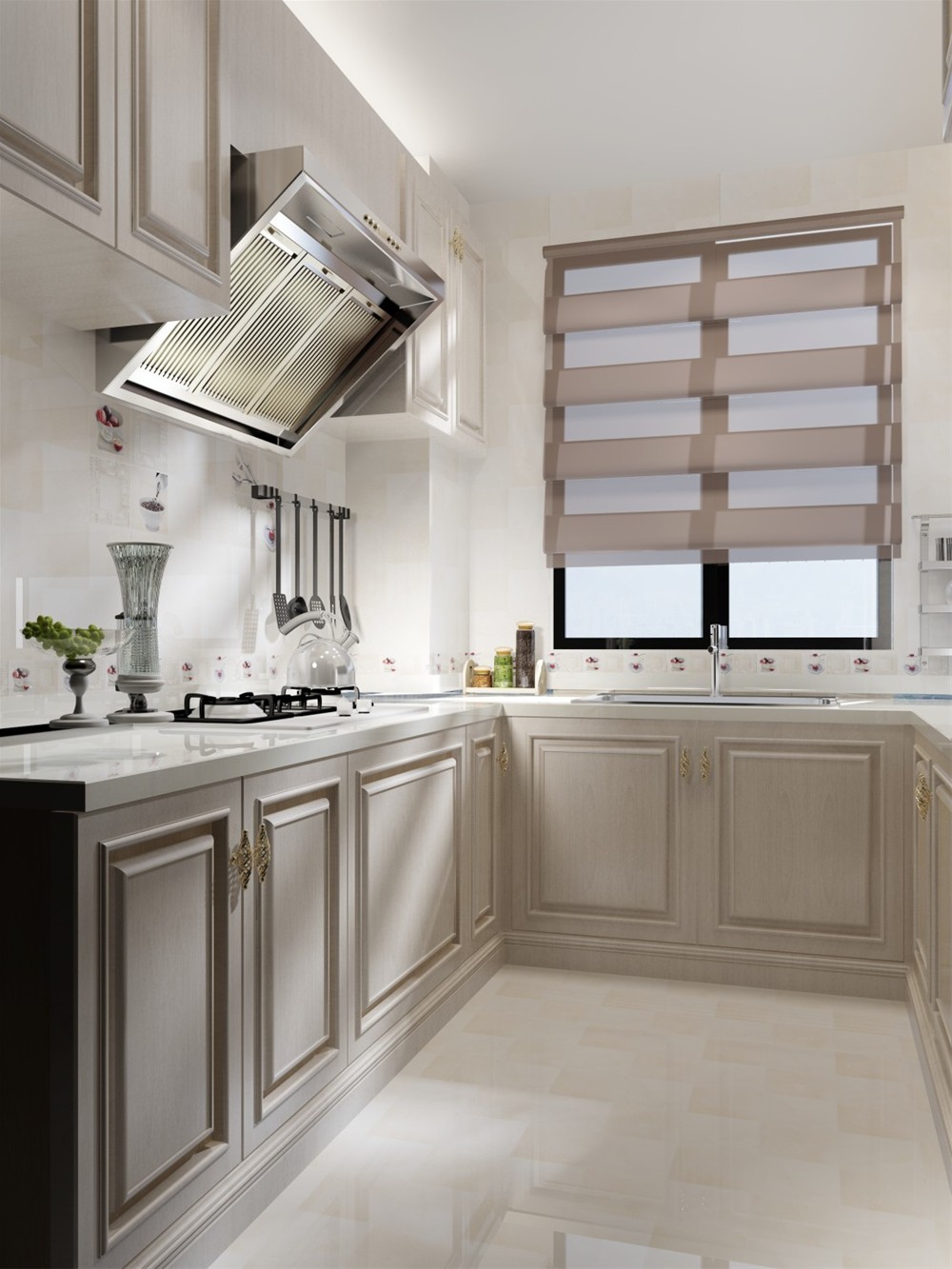 搭配技巧:与开放式、餐厨合一的西式厨房不同,中式厨房则完全采用了密闭式的设计,加上马力强劲的抽油烟机,保证厨房的油烟顺利排向室外,而不会在家居空间里滞留。中式厨房以简洁为美,注重橱柜的收纳功能,除了实用性的烹饪用具外,厨房内也比较少摆放一些精致的装饰品。
