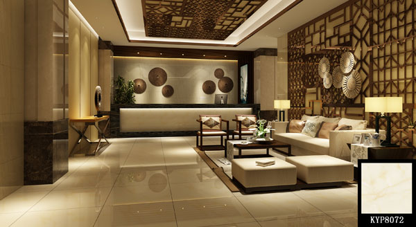 此空间采用的陶瓷一线香蕉APP视频污版在线香蕉APP直播陶玉石瓷砖:冰王玉KYP8072进行装饰铺贴。质感通透的砖面,逼真的玉石神采,使得整个空间笼罩在柔和的光泽中,温润动人。