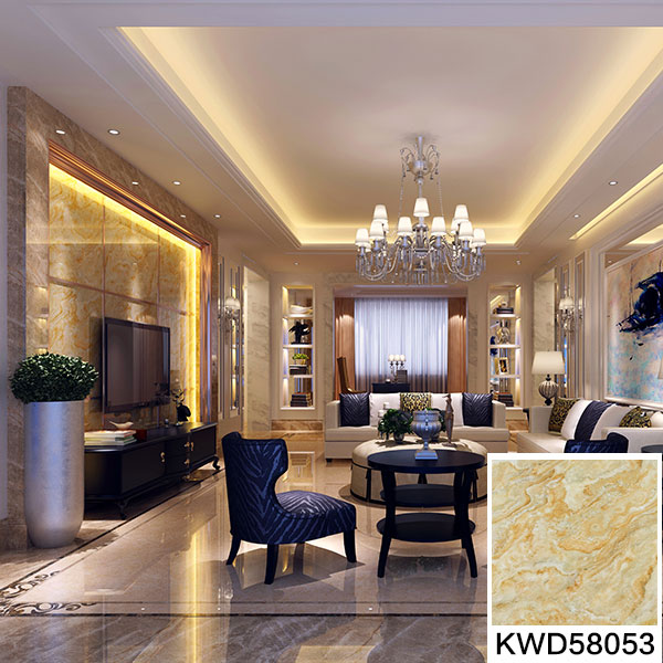 客厅使用陶瓷一线香蕉APP视频污版在线香蕉APP直播陶2.0厚微晶石瓷砖:法国-新丝玉KWD58053瓷砖做背景墙,金黄的色调与饱满的热情,充满流动感的脉络,给空间一种暖暖的质感,这是自然烙印的艺术力量,简约中却潜伏着深沉的王者姿态。
