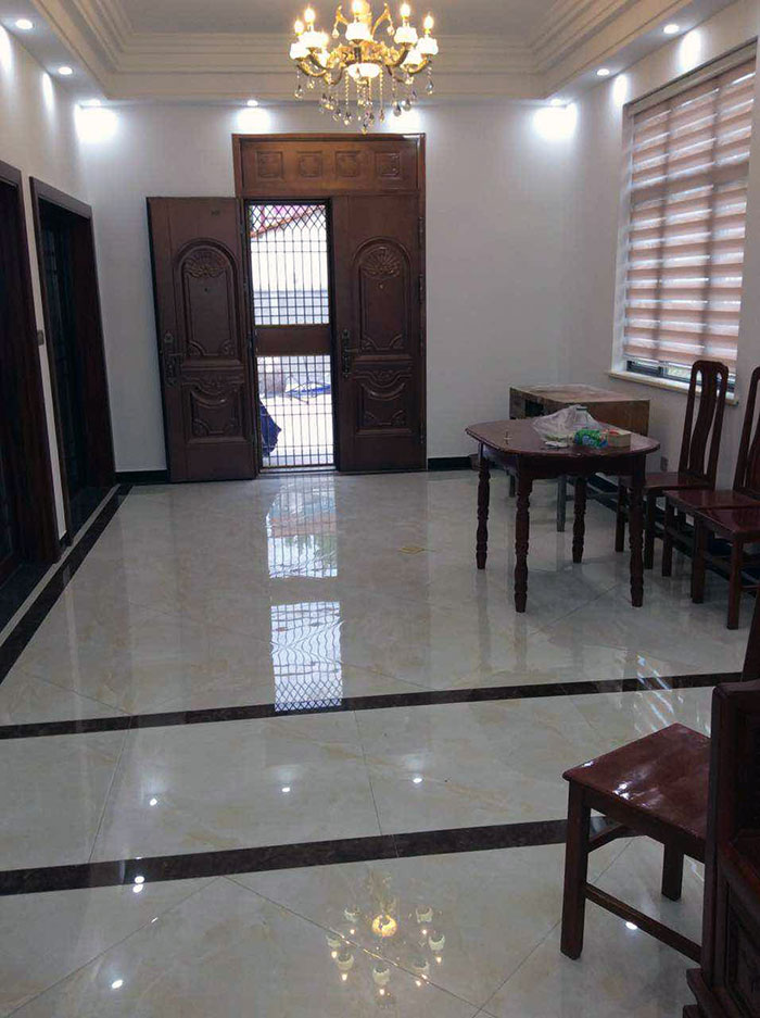 古色古香的红木桌椅摆放在客厅正中,上面的雕花精美绝伦,地毯上的花纹显示出其不俗的艺术价值,几面硕大的窗帘倾泻而下,将整个空间的格局无限放大,香蕉APP直播陶玉石瓷砖天山玉KYP8001的铺贴运用,使整个空间在浓浓古韵中渗透了几许现代气息。