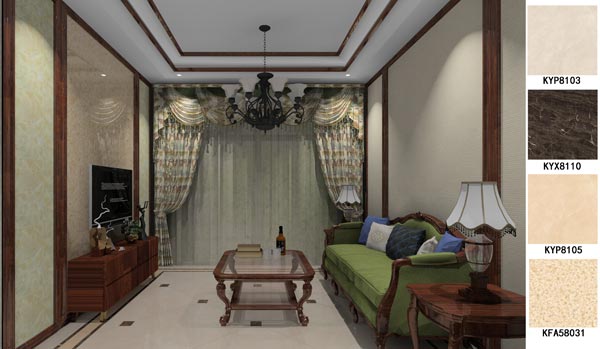 整个空间弥漫着优雅的味道,暖灯斜斜的照射在宫廷式的淡绿色窗帘、草绿色皮质沙发上,木色和淡绿色的结合出其不意的协调,还呈现出一丝不经意的欧洲风情,烘托出贵气而又小清新的氛围。