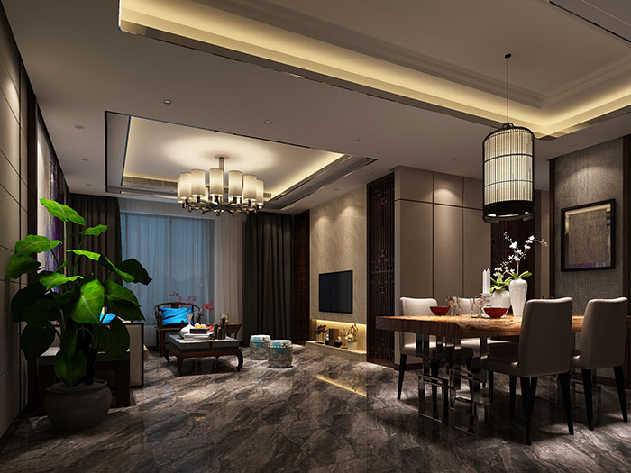 设计师仅用简洁线条已勾勒出吊顶的层次感,客厅和餐厅的区域被巧妙地区分出来。
