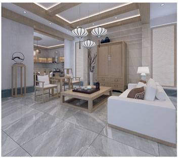 3、地面铺砖之前要保证地面要充分浇湿,在墙上打水平线及在地上放线预排,以确保各房间的低砖在统一水平面上。