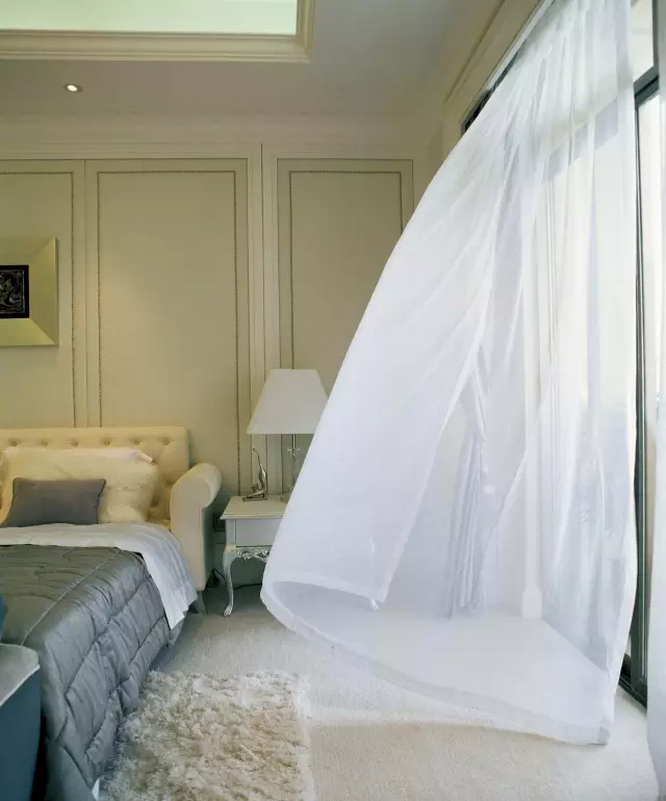 朝南的窗户光线好,薄纱、薄棉或丝质的布料比较合适,朝北的房间,比较阴冷灰暗,要考虑保温功能。