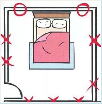 有些人为营造气氛而将床斜放且不靠墙,或为了闪避横梁而将床头悬空。床头不靠实墙,或调头睡,会造成睡眠品质不良、思想叛逆、怪异及与人沟通能力不良。