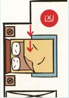 房门对到床,因对到身体不同的部位,会造成对应部位的功能性病变。房门与窗户是室内空气对流的进出口,处于睡眠状态时,风会直接吹到身体,受到风寒的部位会造成病变。为考虑室内空气对流,一般的房门下缘都会留有细缝,所以就算是紧关着门,只要打开空调或窗户开一小缝,都能使室外空气进出。