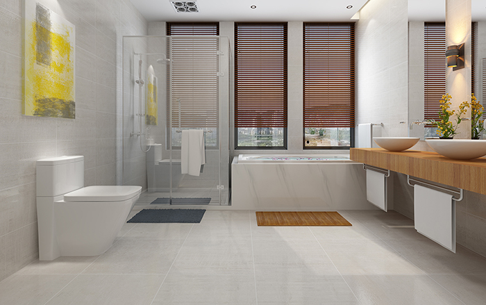 最简约的铺贴形式,“方格铺”对于外形横平坚直的现代仿古砖来说,省工省料且自然大方,完美呈现出一个耐看舒心的空间。