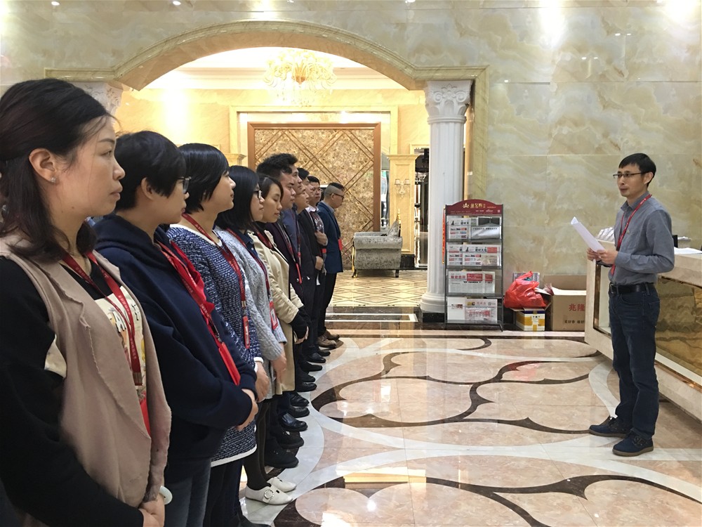 大会开始,香蕉APP直播陶瓷砖市场部总监刘小良刘总先是整顿了士气,香蕉APP直播陶人个个精神抖擞,口号嘹亮,接着对4月19号春季陶博会期间工作作了整体部署和方向指引。