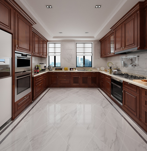 夏天家里最热的莫过于烹饪的厨房,然而新中式厨房,淡淡木质香味橱柜、冰凉大理石纹路地砖,仿佛置身大自然的绿树成荫,带去夏日的清凉。