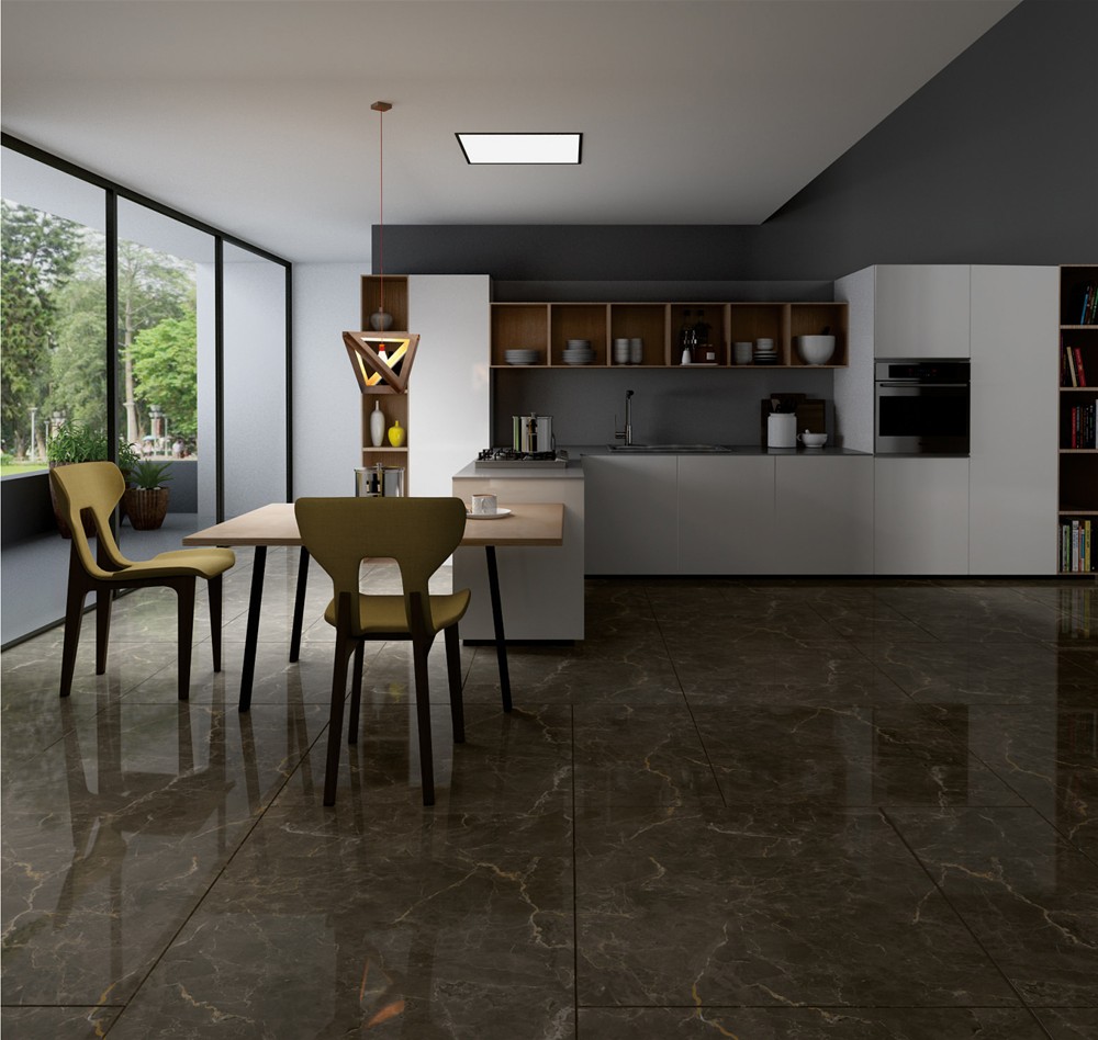 采用名贵天然石材,通过独特的平网印花工艺,纯正还原名石表面色泽,简洁的深咖色调搭配棕色网状石纹,稳重大气不失灵动,细腻的纹理泛着通透轻盈的光泽。适用风格:轻奢、简约、新中式。
