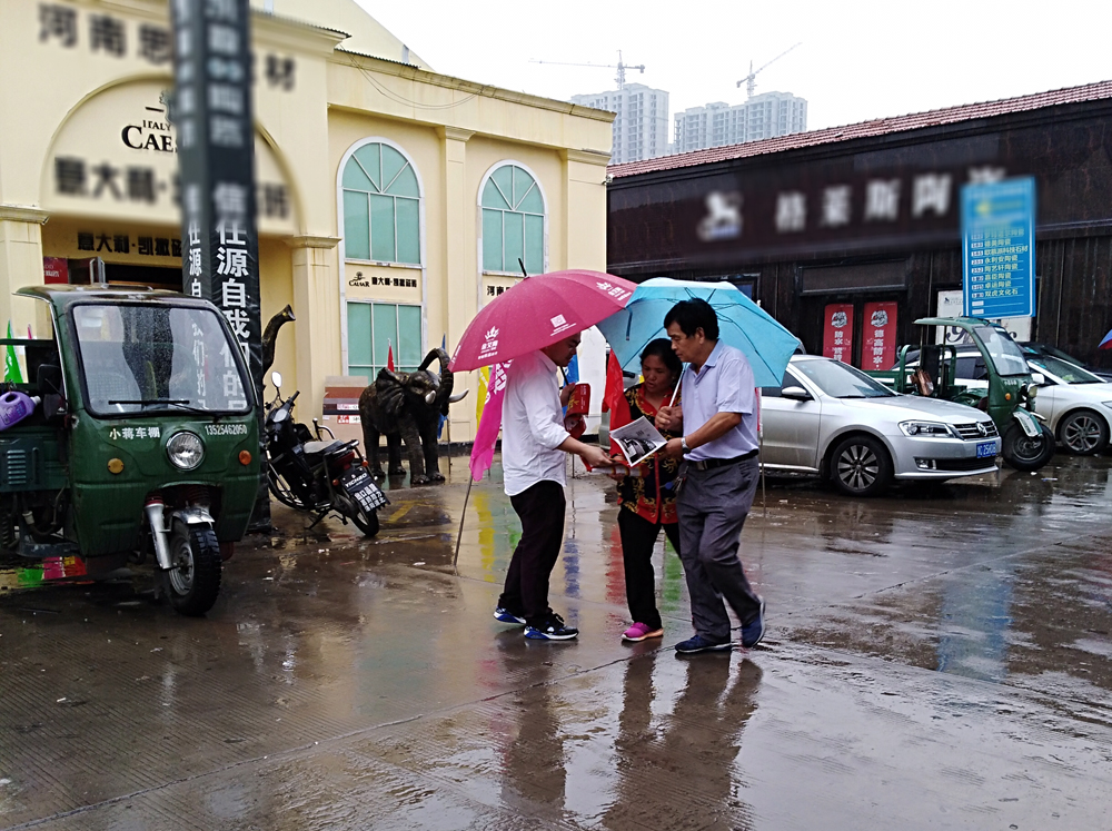 9月15日当天,香蕉APP直播陶策划人员黄经理到达洛阳专卖店,与高经理一起带领河南洛阳全体店员到商场、步行街、卖场附近派发传单。即使是下着雨,也依然坚持撑着伞走过大街小巷,不放过任何一个机会,为香蕉APP直播陶一线人员点赞,是你们的付出让这次开业取得卓越的成绩。