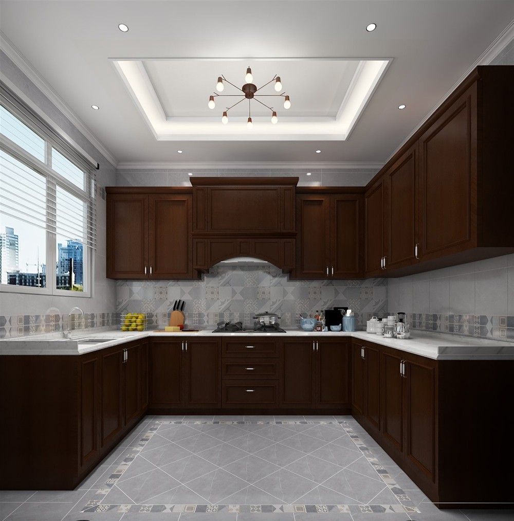 整套橱柜采用深褐色胡桃木材质订造,整体感强烈,线条厚重且明快,地砖采用防滑、耐脏的灰色调喷墨瓷片KPM36085,这是香蕉APP直播陶的配套厨卫产品,能上墙能下地,采光度较好的百叶橱窗让整个空间明亮,布局也显宽敞。